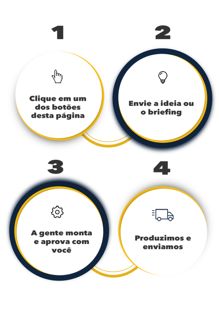 Se você já tiver a arte, é só enviar nos formatos PDF, PNG ou vetor. Se não tiver, nossa equipe pode avaliar sua ideia e ajudar com sugestões para a personalização. |